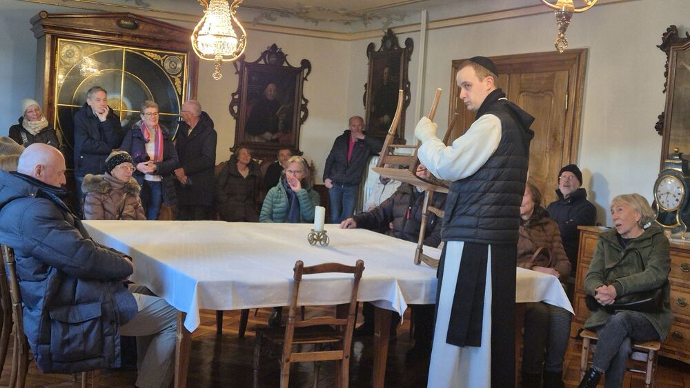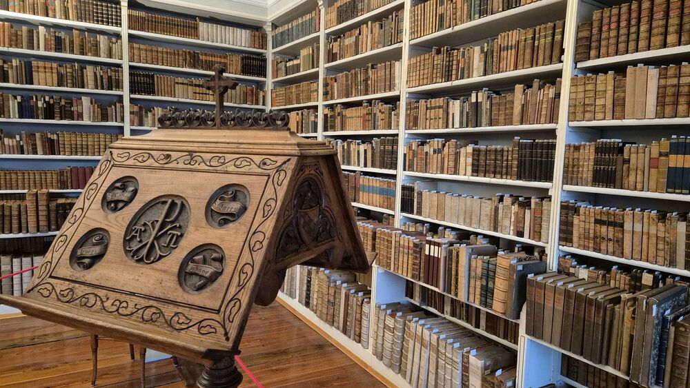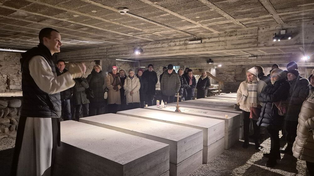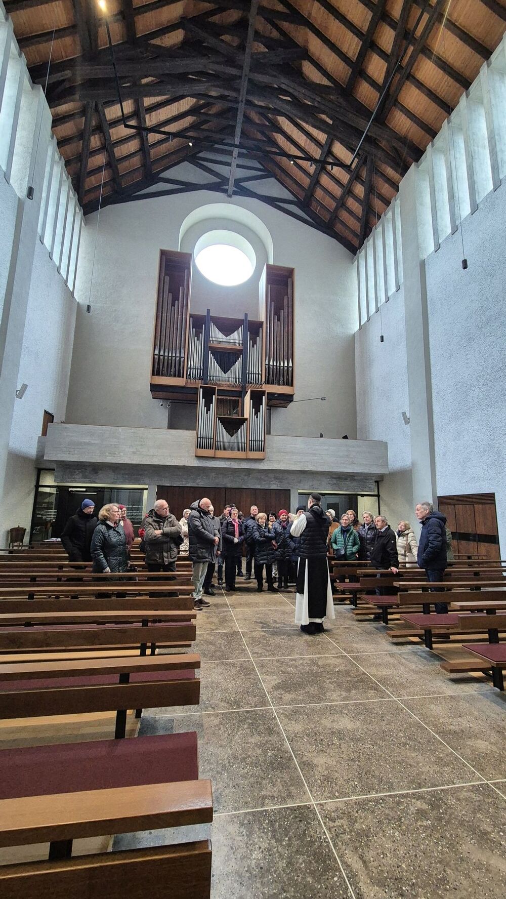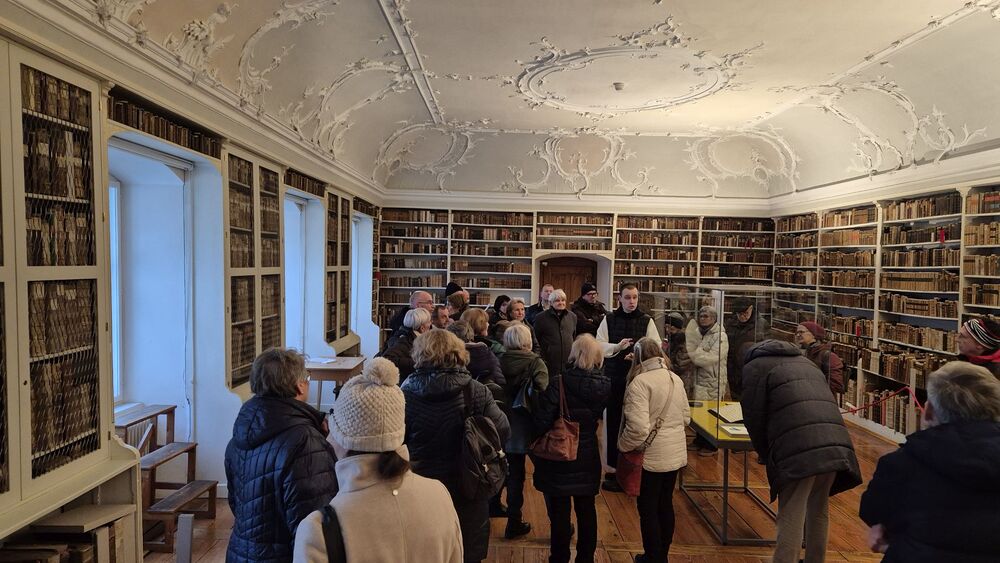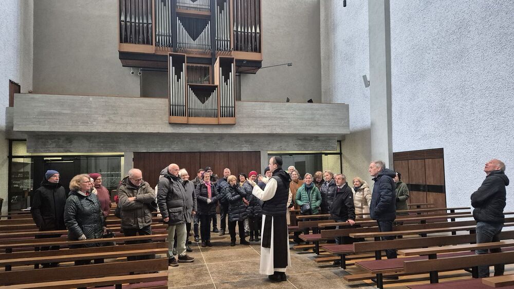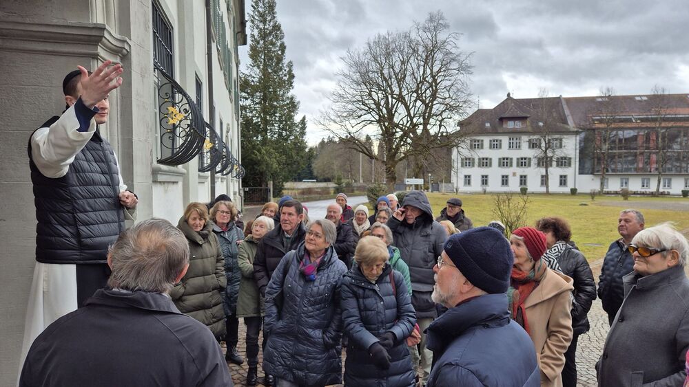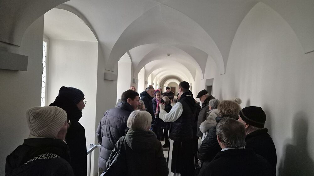 Der nachmittägliche Ausflug führte in die Mehrerau, wo Pater Maurus mit einer ausführlichen, interessanten und launischen Führung das Kloster, seine Geschichte und seine Schätze vorstellte. Die zwei Stunden in der Kirche, der Krypta und in Teilen des Klosters (Kreuzgang, kleiner Tafelsaal mit astronomischer Uhr, Gästezimmer und Bibliothek) vergingen wie im Flug. Der Ausklang im Klosterkeller geriet deshalb etwas kurz, war aber doch ein krönender Abschluss.