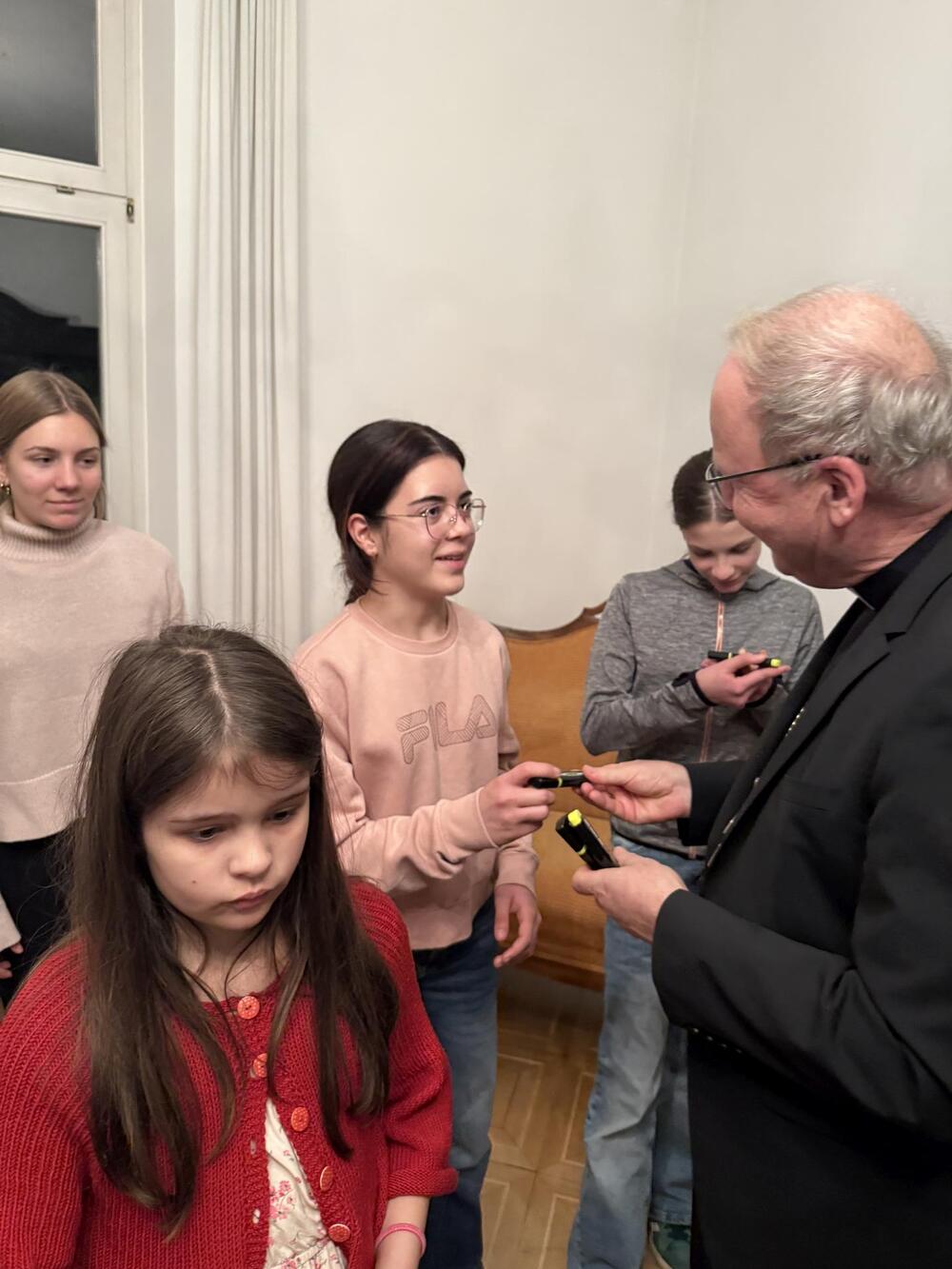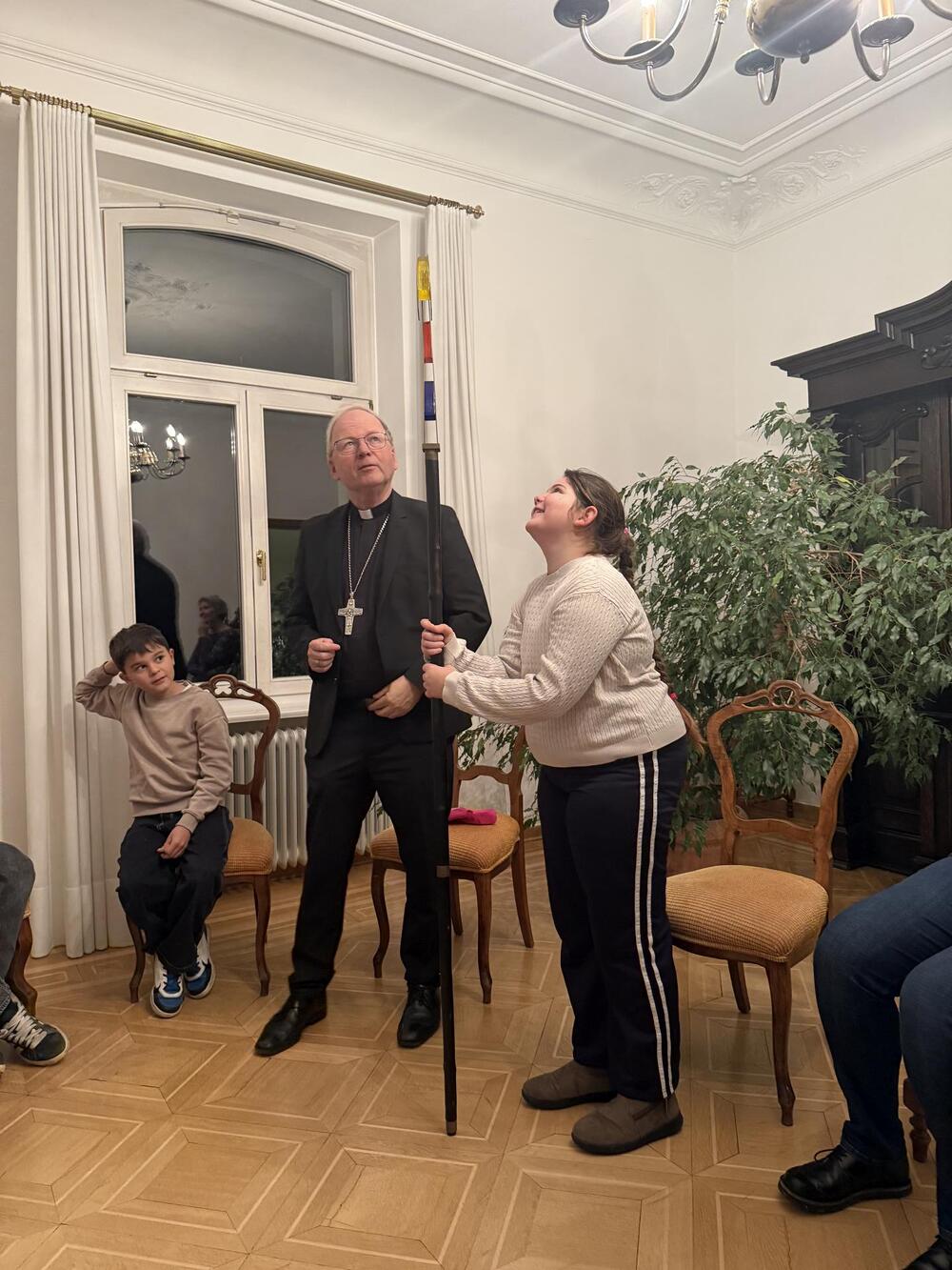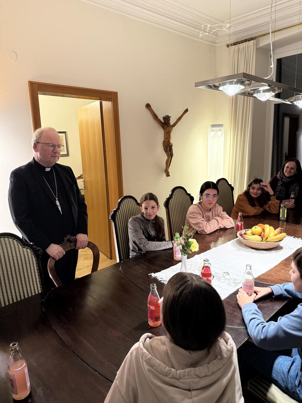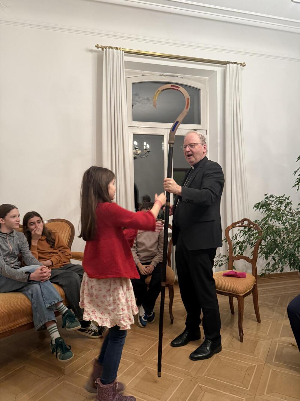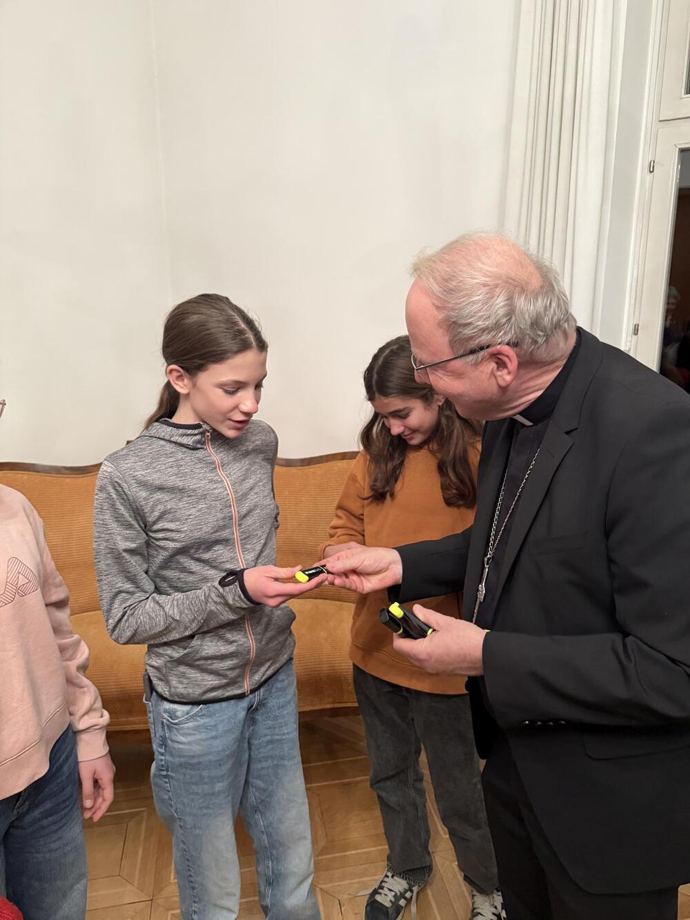 Letztens sind wir, die Ministranten aus Koblach, mit dem Zug nach Feldkirch gefahren. Dort besuchten wir den Bischof Benno. Zuerst wurden wir in seinem Haus mit einer leckeren Limo begrüßt, worauf uns das Haus gezeigt wurde. Wir lernten, was der Bischof trägt, wie zum Beispiel den Bischofsstab oder die Bischofsmütze. Auch lernten wir seinen Alltag kennen. Zum Abschluss durften wir noch das „Halleluja-Eis“ probieren, was uns auch sehr geschmeckt hat. Am Abend fuhren wir mit tollen Erfahrungen wieder nach Hause.