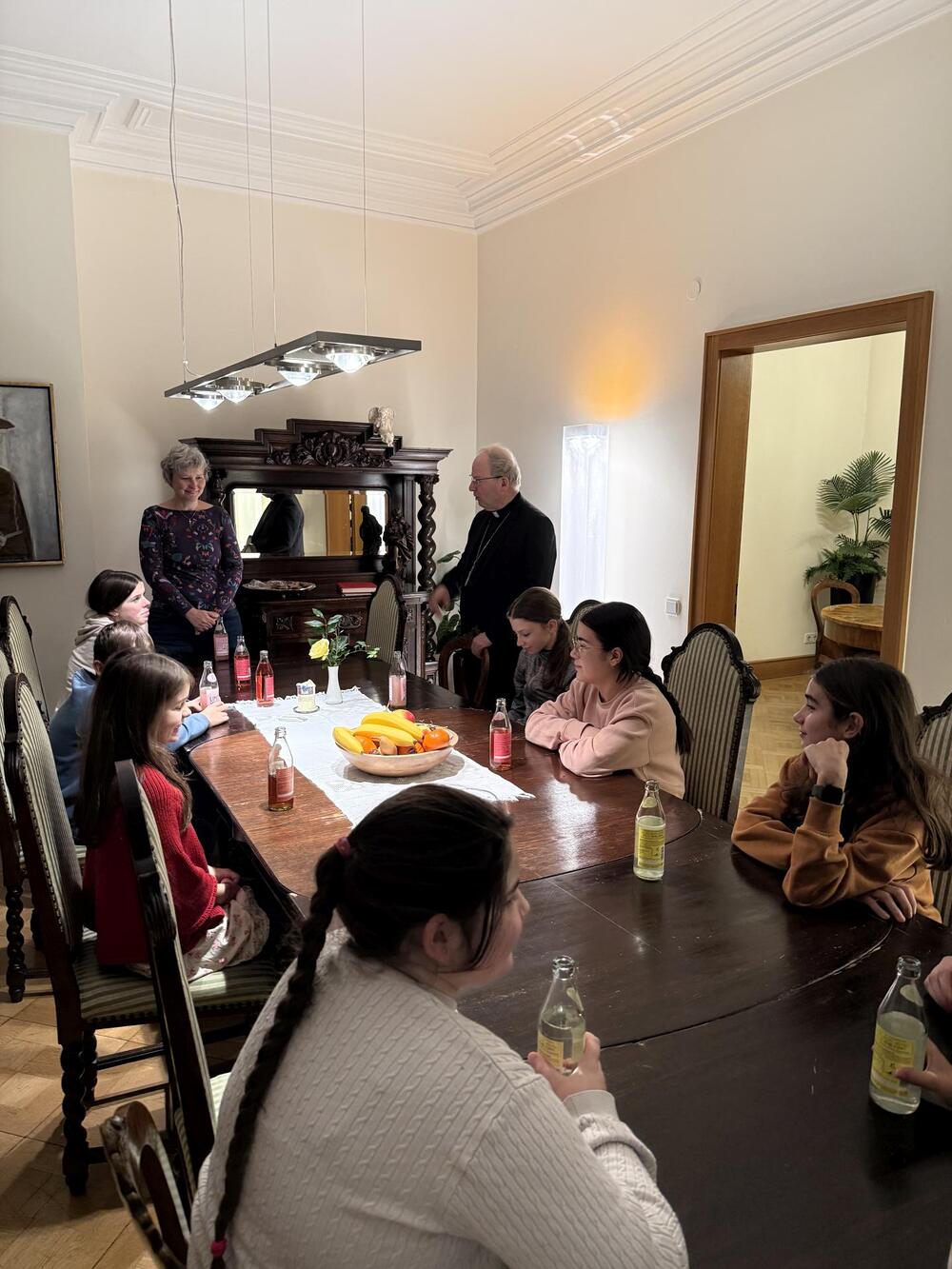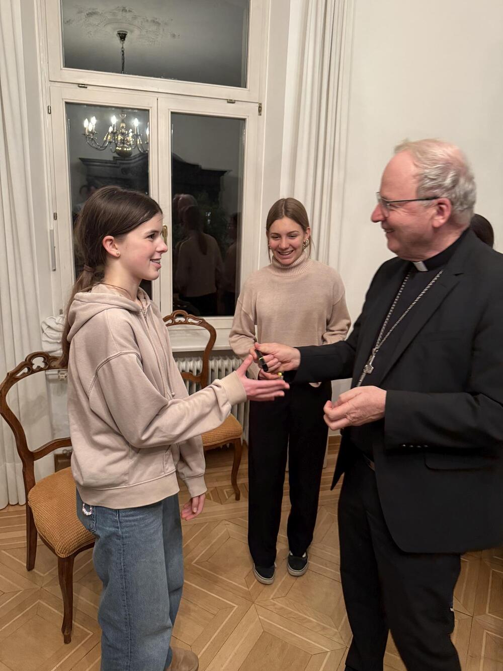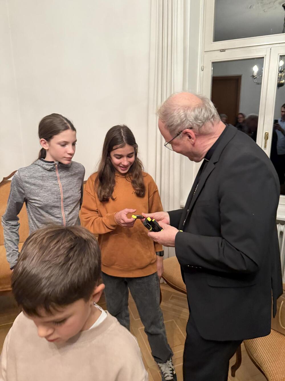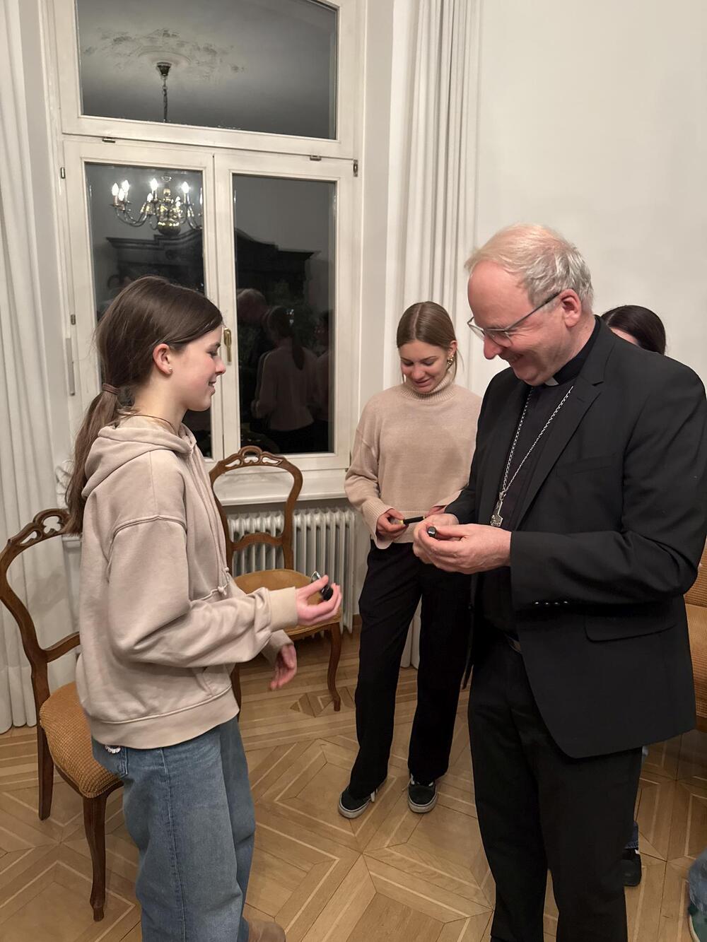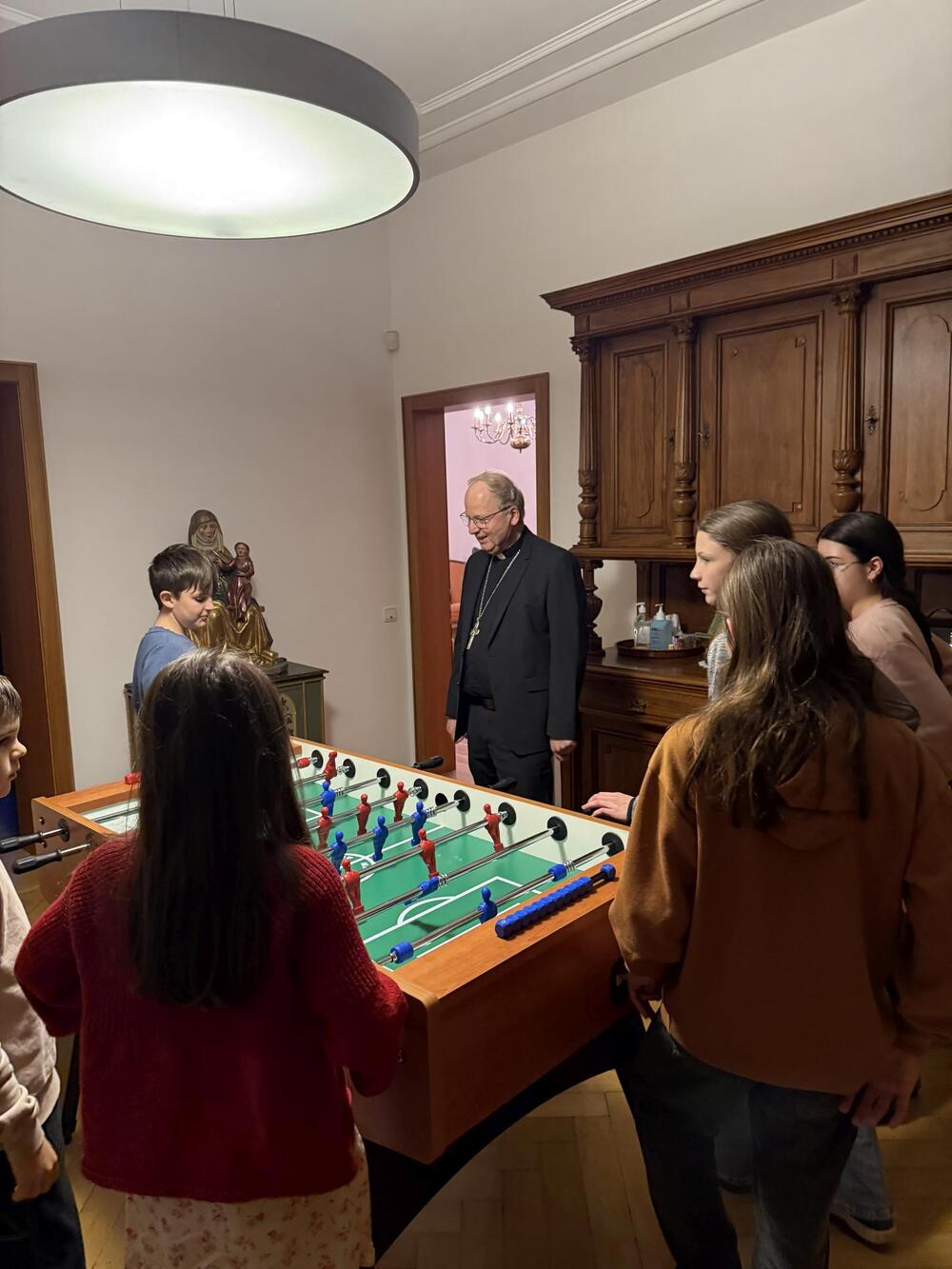 Letztens sind wir, die Ministranten aus Koblach, mit dem Zug nach Feldkirch gefahren. Dort besuchten wir den Bischof Benno. Zuerst wurden wir in seinem Haus mit einer leckeren Limo begrüßt, worauf uns das Haus gezeigt wurde. Wir lernten, was der Bischof trägt, wie zum Beispiel den Bischofsstab oder die Bischofsmütze. Auch lernten wir seinen Alltag kennen. Zum Abschluss durften wir noch das „Halleluja-Eis“ probieren, was uns auch sehr geschmeckt hat. Am Abend fuhren wir mit tollen Erfahrungen wieder nach Hause.
